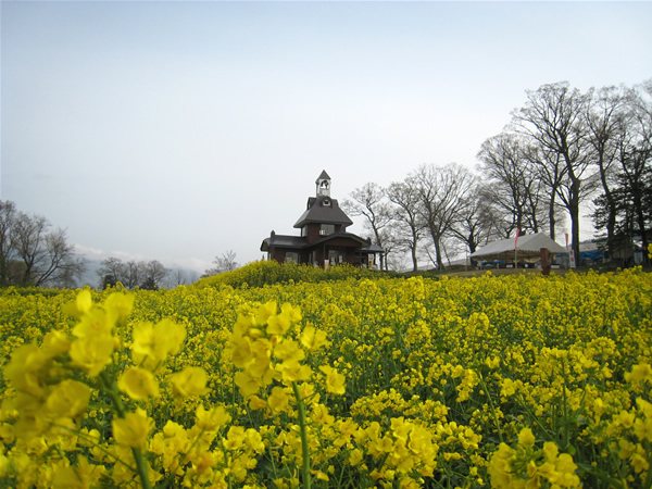 野沢へお車でお越しのお客様は、豊田飯山ICを降りてR117を野沢方面へ下ってくると、しばらくして右側にその菜の花畑が見えてきます。(運転中の脇見はお気をつけください!)