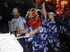 9月8日夜8時、夜野沢組惣代事務所前から行列が出発。神の降臨の先導者として道を開く猿田彦の舞(シメ切り)が行われる。猿田彦は赤い天狗の面をつけ、かぶとをかぶり白装束に赤い羽織を身につけている。